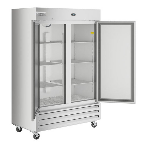 The RVF-54 is a 53.9" wide, reach in bottom-mount stainless steel freezer from Regal that provides accurate control with an electronic thermostat and an easy to read digital LED temperature display. The reach in bottom-mount stainless steel freezer has 6 adjustable, heavy-duty epoxy coated wire shelves. Storage capacity on this model is 42 cubic feet.