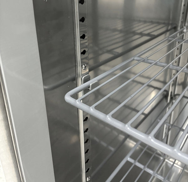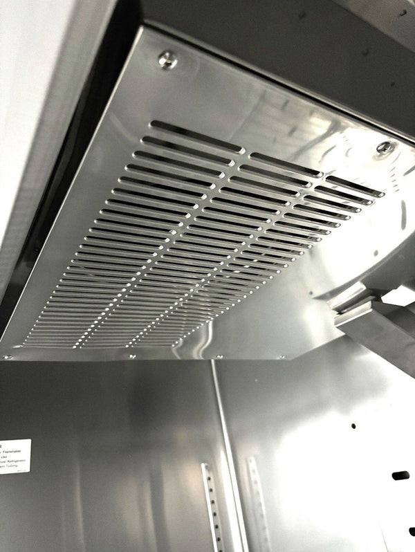 This reach in bottom-mount stainless steel refrigerator is ETL listed and energy efficient R290 cooling system.