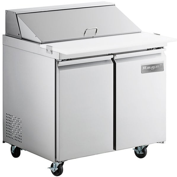 The RST-36 is a 36.2" wide, stainless steel sandwich/salad table refrigerator from Regal that provides accurate control with an electronic thermostat and an easy to read digital LED temperature display. The stainless steel sandwich/salad table refrigerator comes with (10) 1/6 x 4" deep portion control pans and an 11.4" sanitary cutting board included.